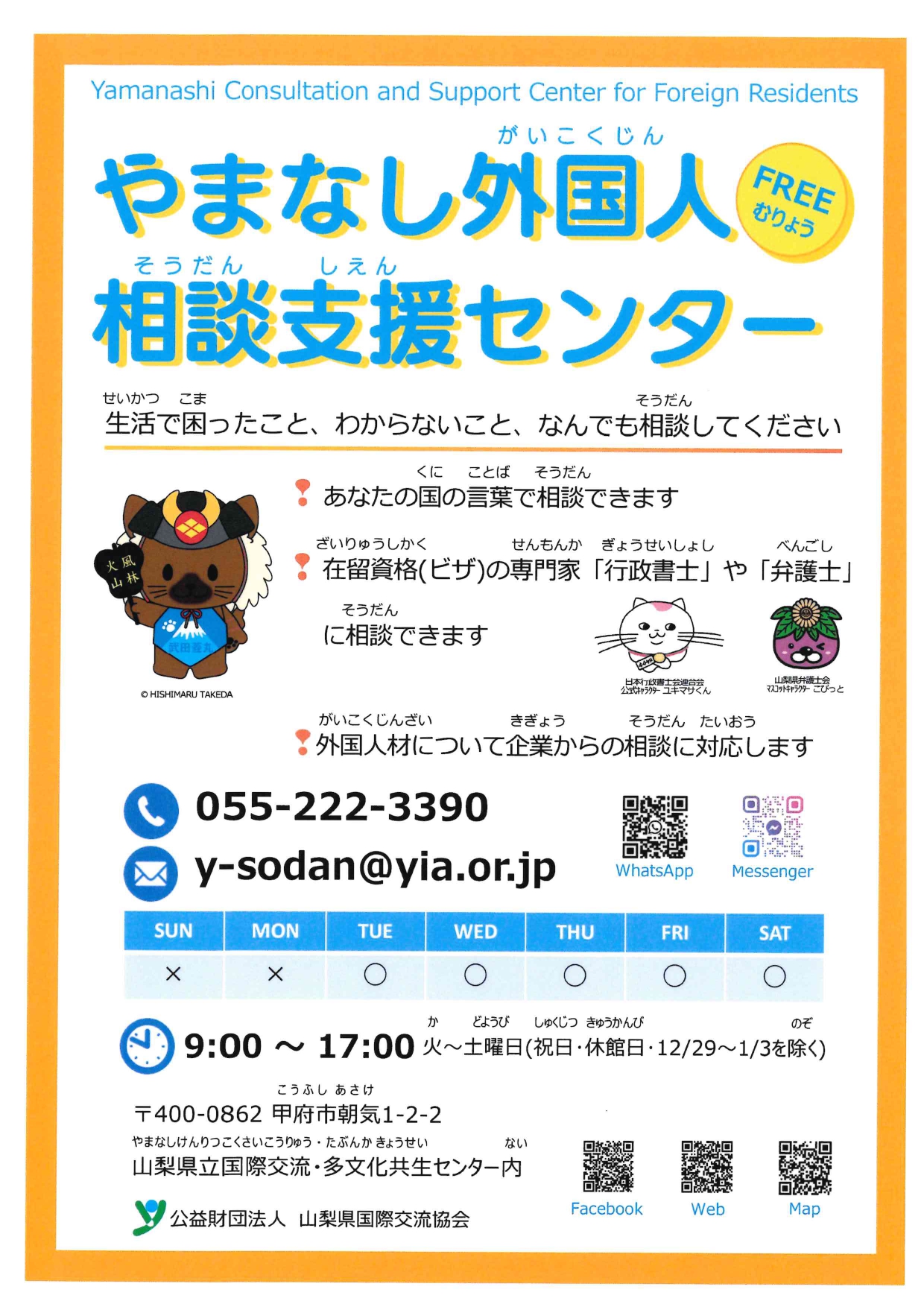 ●山梨県に住む 外国人の 相談センターや 語学教室、 イベントの お知らせ